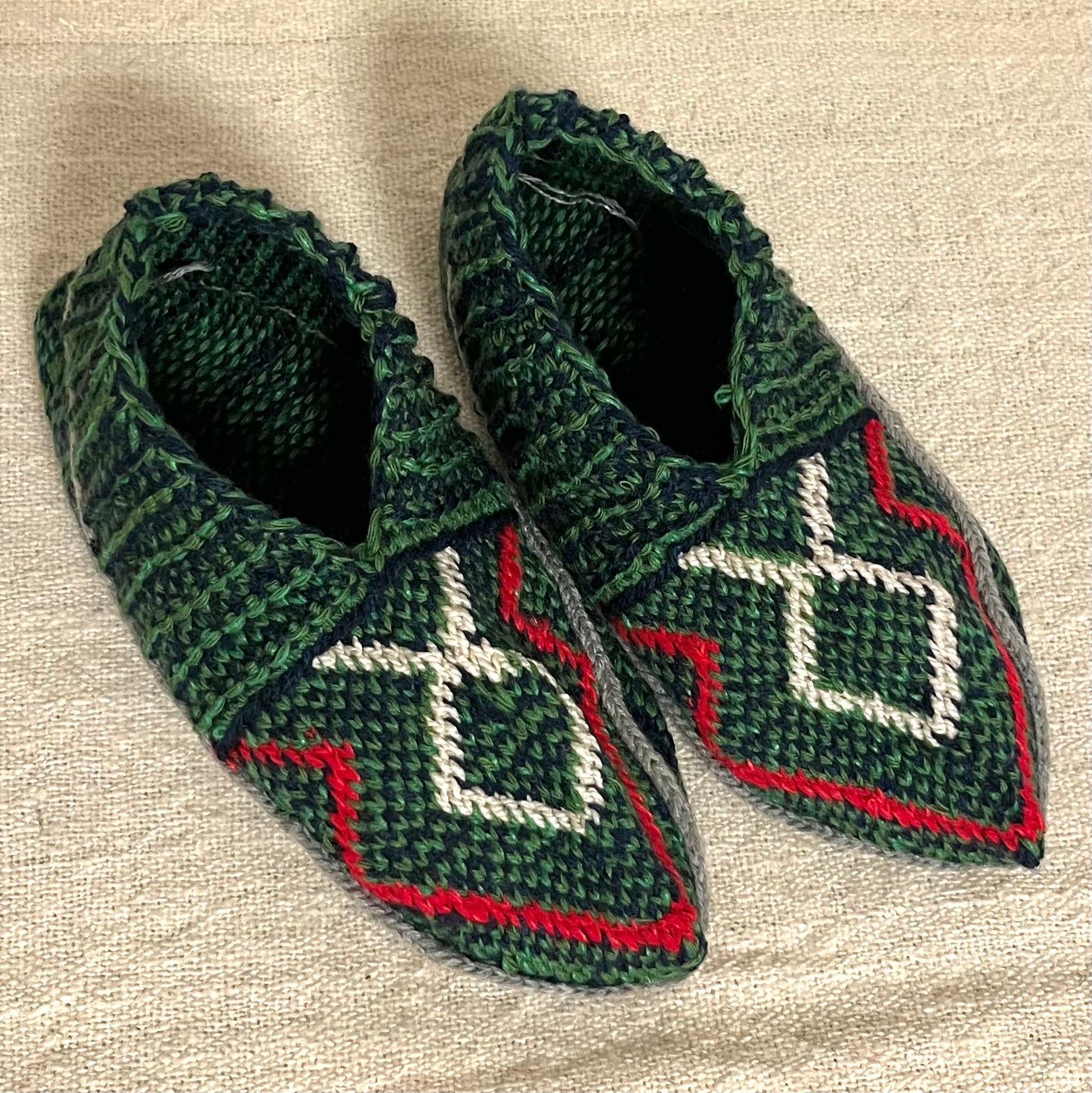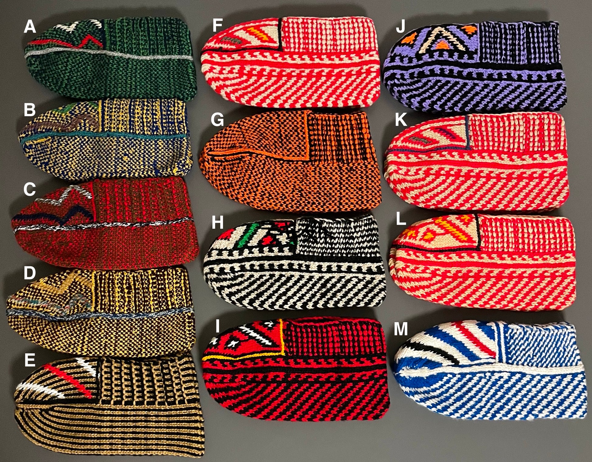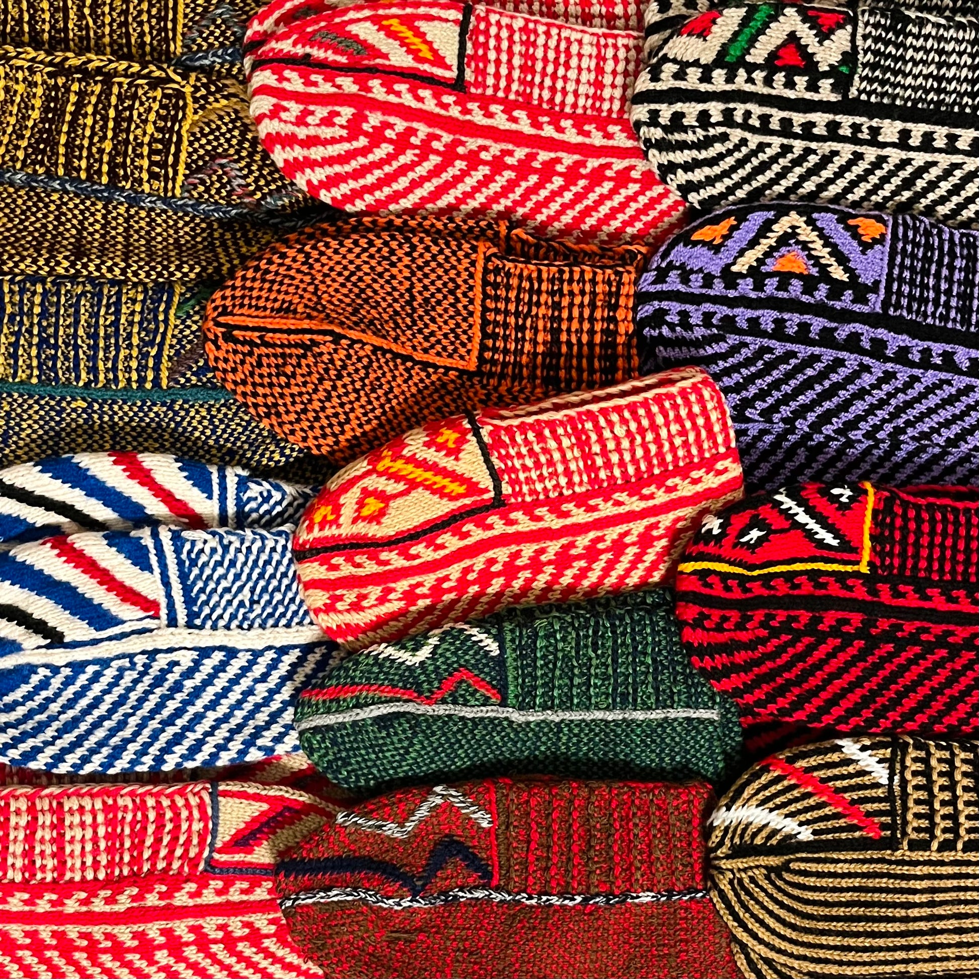 この土地で暮らすおばあちゃんたちが、ひとつひとつ丁寧に編んだ、伝統的な手編みの靴下です。色づかいや柄に、作り手の個性と手しごとの温もりが感じられます。