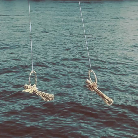 山形県・庄内平野の稲藁を使い、一つひとつ丁寧につくられたモビールです。
