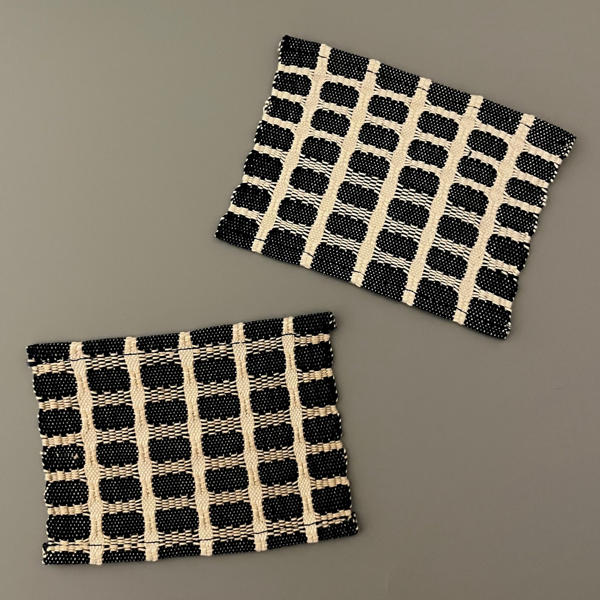 鳥取県米子市に工房を構える NPO 法人「おりもんや」で織られた、4枚綜絖の組織織「吉野織」のコースター2枚セットです。